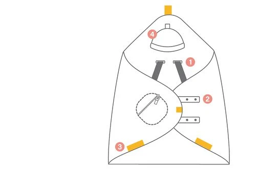 Boutons pressions réglables permettant d’emmitoufler bébé à la taille idéale.