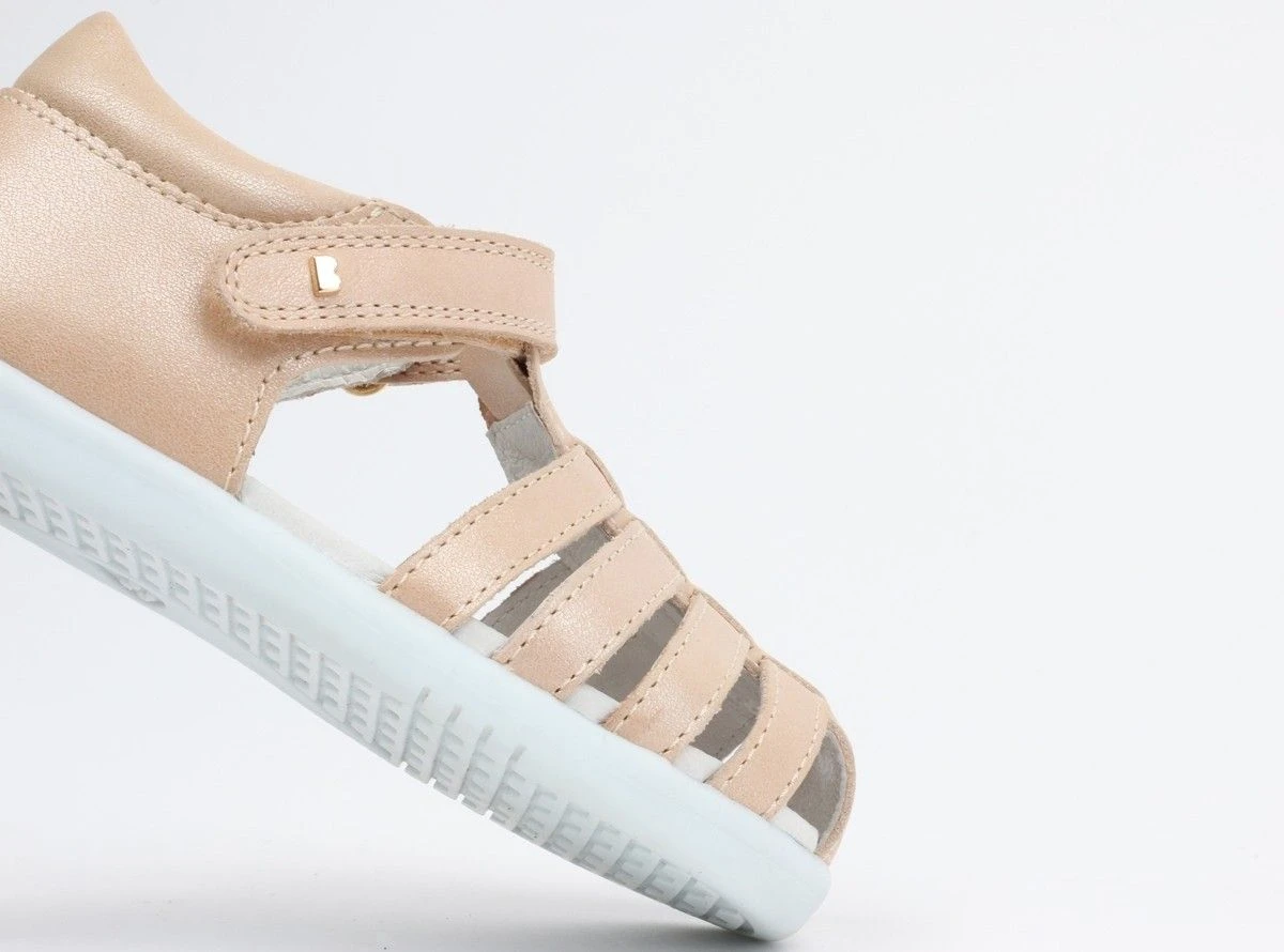 On obtient une forme de chaussure naturelle en créant une coupe qui colle à l’anatomie unique du pied du tout-petit [qui se déplace d’un pas assuré]. Cette conception assure une bonne coupe autour de la cheville et du talon et offre
