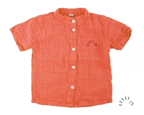La chemise à manches courtes est confectionnée en mousseline estivale certifiée estivale. Elle est donc conçue pour les journées très chaudes! L’effet froissé est créé par la structure spéciale du tissu.