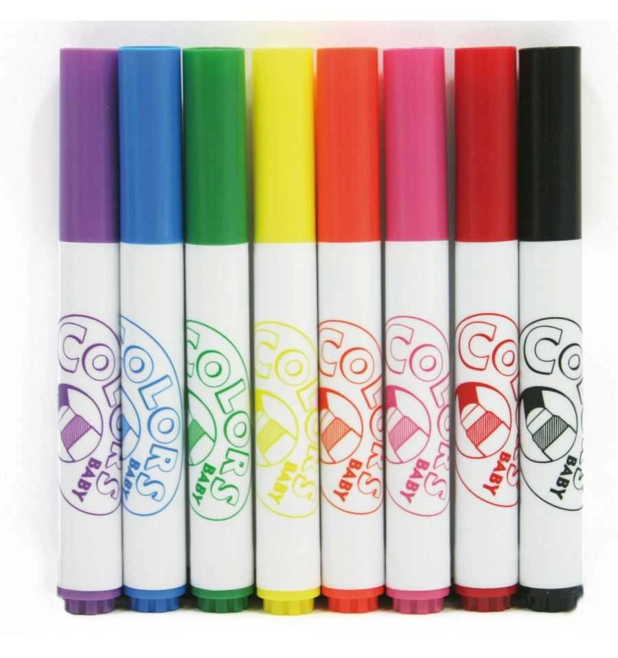 Cet assortiment de 8 feutres Colors Baby est destiné aux bébés et enfants dès 2 ans. Les feutres de couleurs assorties sont dotés d’une pointe ronde sécurisante.