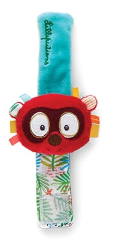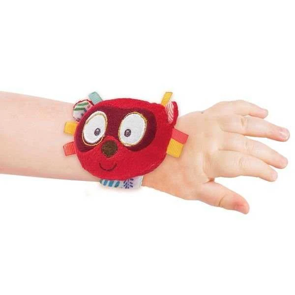 Voilà un hochet peu ordinaire que bébé n’a même plus besoin de secouer ! Attaché au poignet, le bracelet hochet fera du bruit lorsque bébé bougera les bras ! Pratique pour emporter Georges partout avec soi !