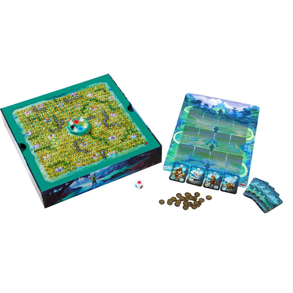 Contenu: 1 plateau de jeu « labyrinthe de la forêt des lumières » avec technologie à LED, 4 pions transparents, 1 plateau de jeu « chemin vers le château de Luxantis », 36 cartes « créature de l’ombre », 24 tuiles « bûche », 1 dé, 1 règle du jeu.