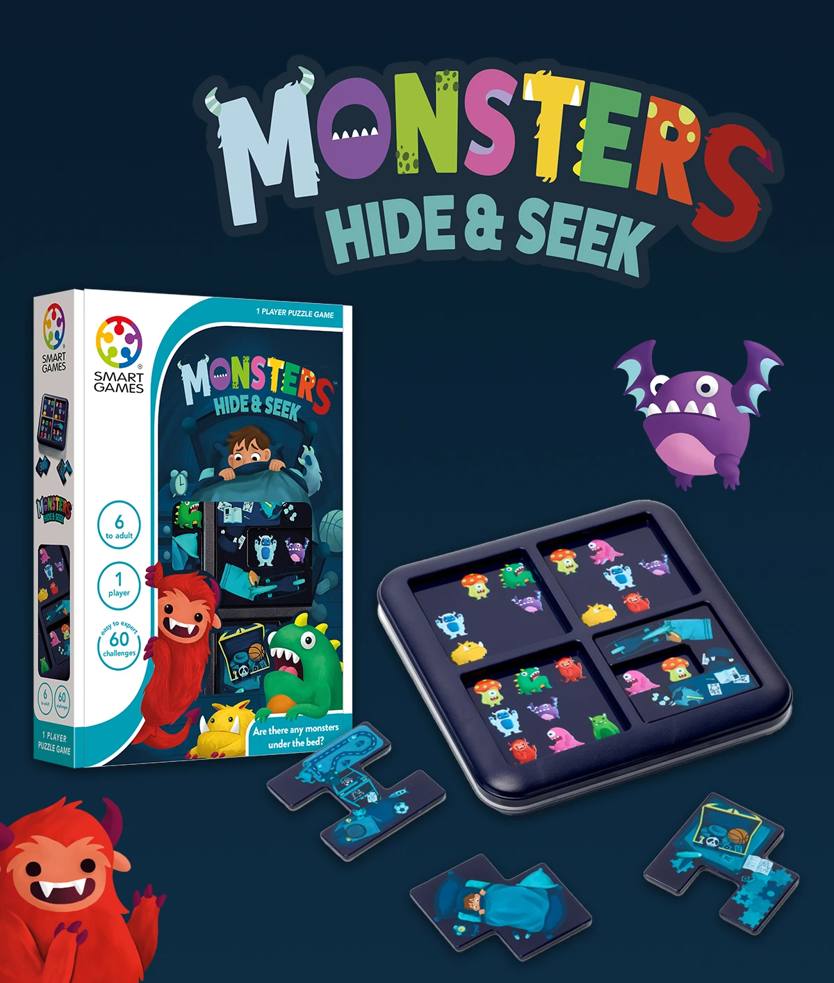 La nuit, dans votre lit, des bruits étranges parviennent à vos oreilles… Quels sont les gentils monstres Umbrae qui ont décidé de vous rendre visite ? Afin de les découvrir, vous devrez placer aux bons endroits dans votre chambre les quatre pièces «meubles et objets» qui recouvriront ceux qui n’ont pas été invités par le défi choisi. «Monstres sous le lit» est un jeu proposant soixante défis du plus simple au plus difficile dans un format idéal pour les voyages.