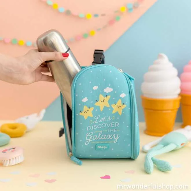 Décollage immédiat du bout de chou intergalactique ! Destinés aux petits qui ne tiennent pas en place et ont plus de carburant qu’une fusée spatiale. Pour de petits trajets et quelques courses, on emmène partout ce petit sac à doublure isotherme, archi craquant… un petit pas pour bonhomme, et un grand pas vers son bonheur. Parce qu’il maintient le froid et la chaleur jusqu’à 3 h, et qu’en plus d’être très pratique et très sûr, il comprend un thermos spécial liquides de 350ml qui gardera ses repas et boissons bien au chaud jusqu’à 10 heures, et bien fraîches jusqu’à 24 heures. Amstrong et son Apolo11 peuvent aller se recoucher, si quelqu’un laisse sa trace et se fait aimer jusqu’à la lune, c’est poussin !