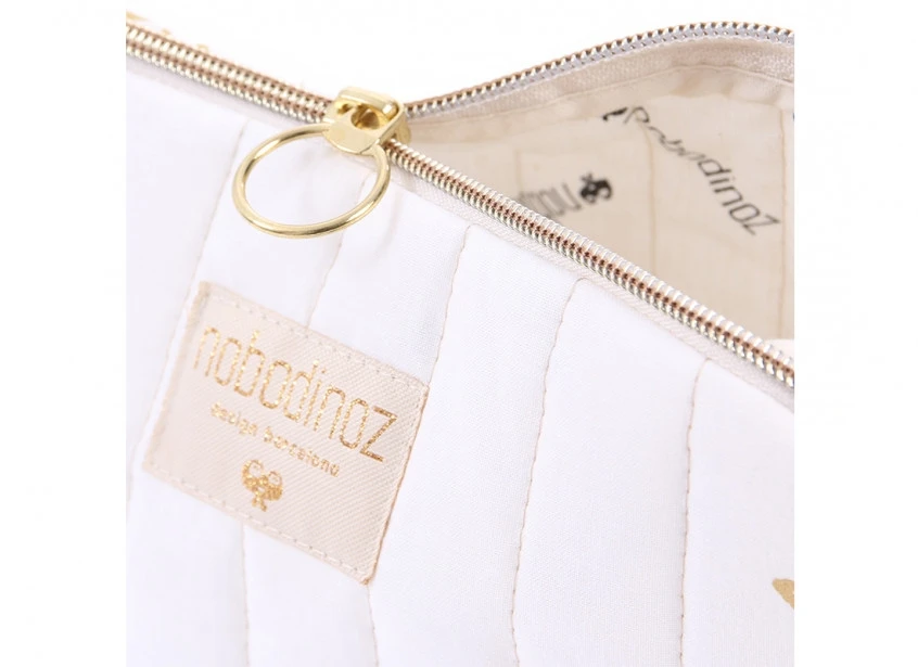 – Tissu matelassé imprimé et intérieur résistant à l’eau.